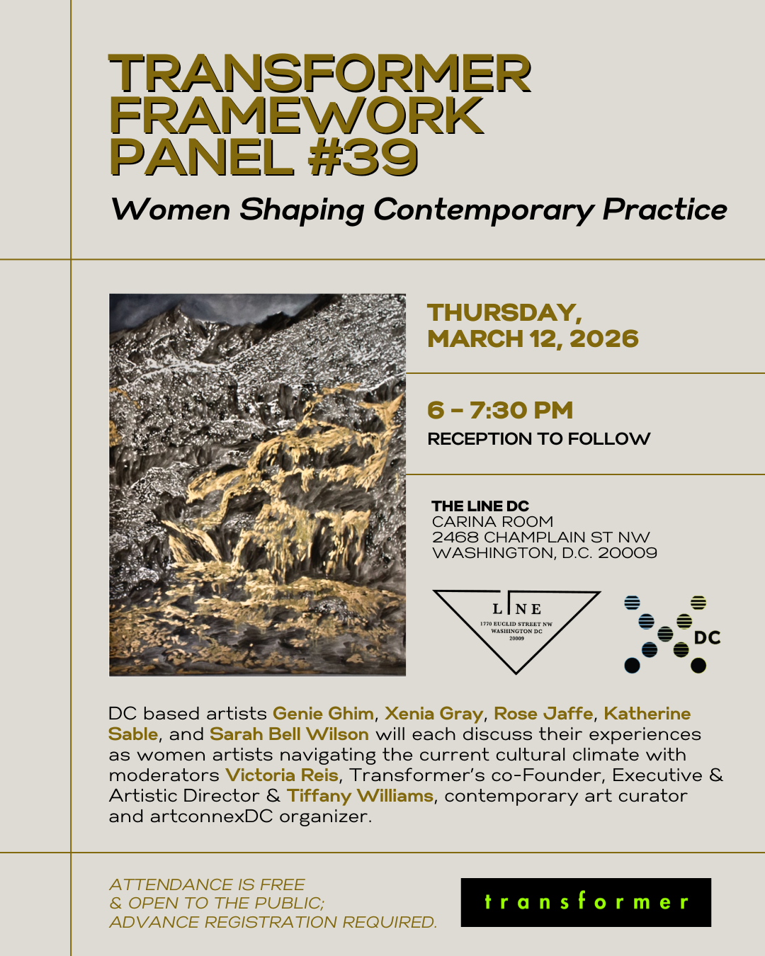 artconnexDC is thrilled to collaborate with Transformer as they continue their insightful, artist-centered FRAMEWORK Panel Series with FRAMEWORK 39: Women Shaping Contemporary Practice, highlighting women in the arts who are emerging into the contemporary arts field, creating dynamic new trajectories with their visual arts practices.